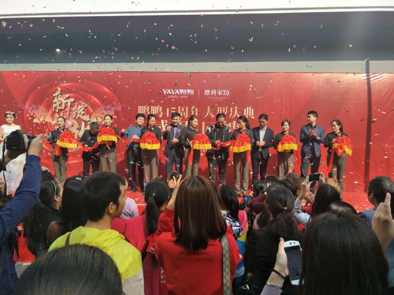 2017年10月28日,維科集團旗下全國首家集合店在江西共青城市盛大開業(yè)。開業(yè)慶典活動人氣爆棚,活動進行兩天銷售突破10萬元。28日早上以歡快的鑼鼓聲開場,吸引了店鋪周邊的共青市民駐足。維科家紡用床單和被套做裹布秀出場,模特優(yōu)雅的步伐,配合主持人對每款產品FAB的介紹,讓廣大消費者對維科家紡歐了全新的認識。隨后呀呀實體店管理公司南大區(qū)經理李海泉發(fā)表開業(yè)致辭。事業(yè)部副總經理楊躍輝、維科家紡總經理王吉鋒、鴨鴨股份公司總經理徐相圣等領導進行開業(yè)剪彩,并陪同當地政府有關領導到敬老院進行了愛心捐贈,相關媒體全程跟蹤采訪報道。此次開業(yè)慶典活動,不僅提升了鴨鴨品牌的美譽度,更擴大了維科家紡在當地的知名度。