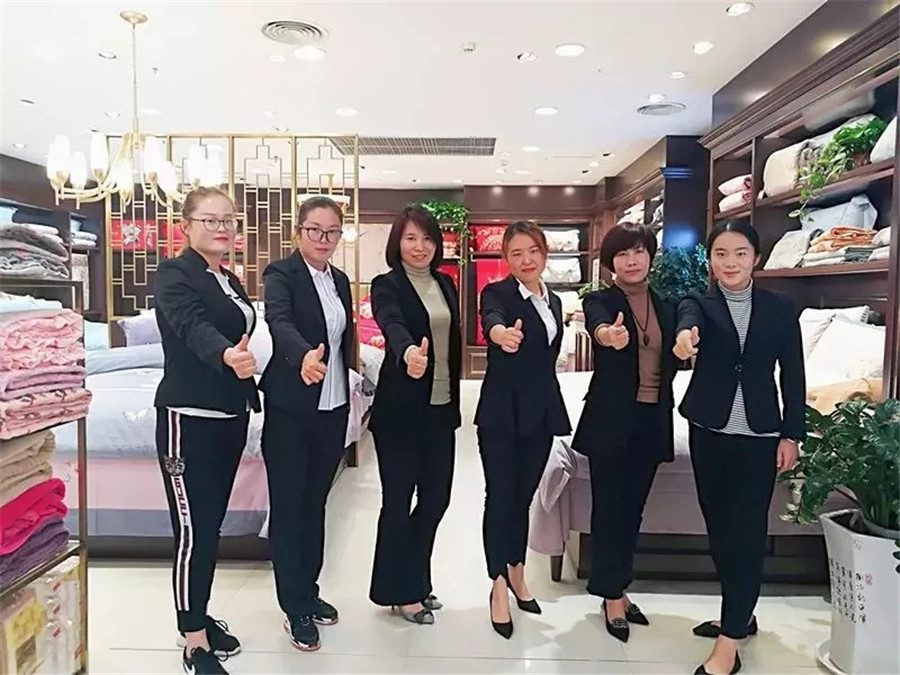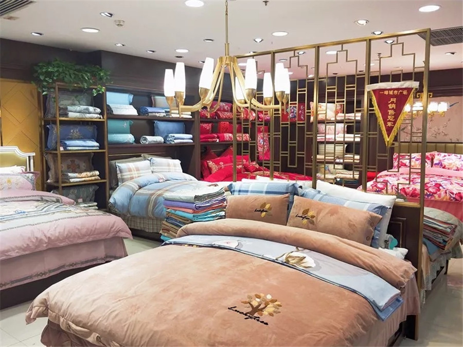 賈:創業確實蠻辛苦的,我在做家紡以前從事的是酒店行業,這個跟家紡完全是兩個不同的領域,所以在剛自主經營長葛專賣店的時候也遇到了不少的困難,比如導購的培訓、營銷活動的策劃及備貨等等,好在總公司給予了很大的支持與幫助。特別是近兩年,公司更加注重對我們加盟商的支持力度。每次活動前期,公司都會派業務督導過來和我一起策劃,教我分析總結合理備貨。前段時間,長葛一峰城市廣場專柜擴店重裝采用了總部新的店鋪形象,同時,總部還在細節處為我進行了量身定制,能夠更好地進行陳列,讓我以嶄新的姿態去迎接更高的挑戰。所以總的來說,我非常感謝公司對我的用心,謝謝!
