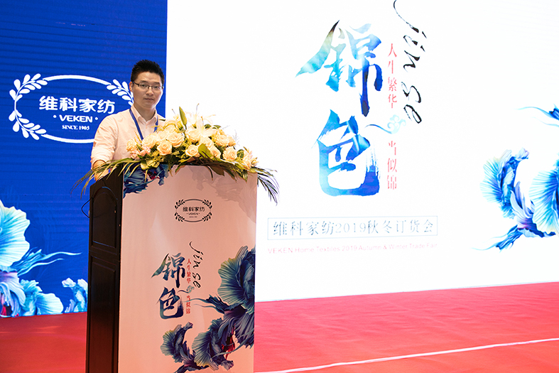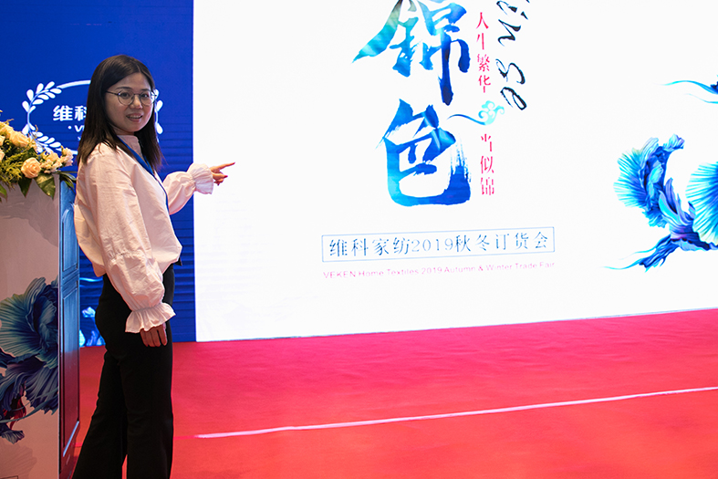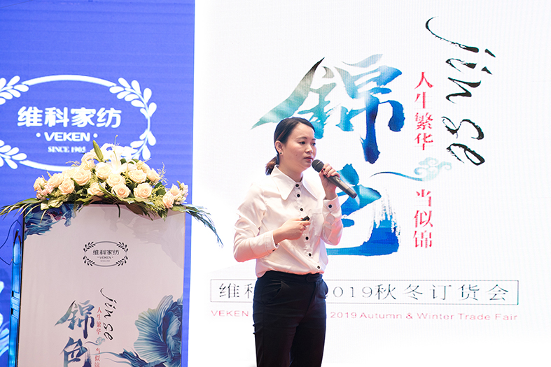 商品供應部王巧娜帶領產品解說團隊揭開維科家紡2019秋冬新品的神秘面紗,具體展現“錦色——人生繁華當似錦”這一主題,讓與會人員對新品有了更直觀和深刻的認識。