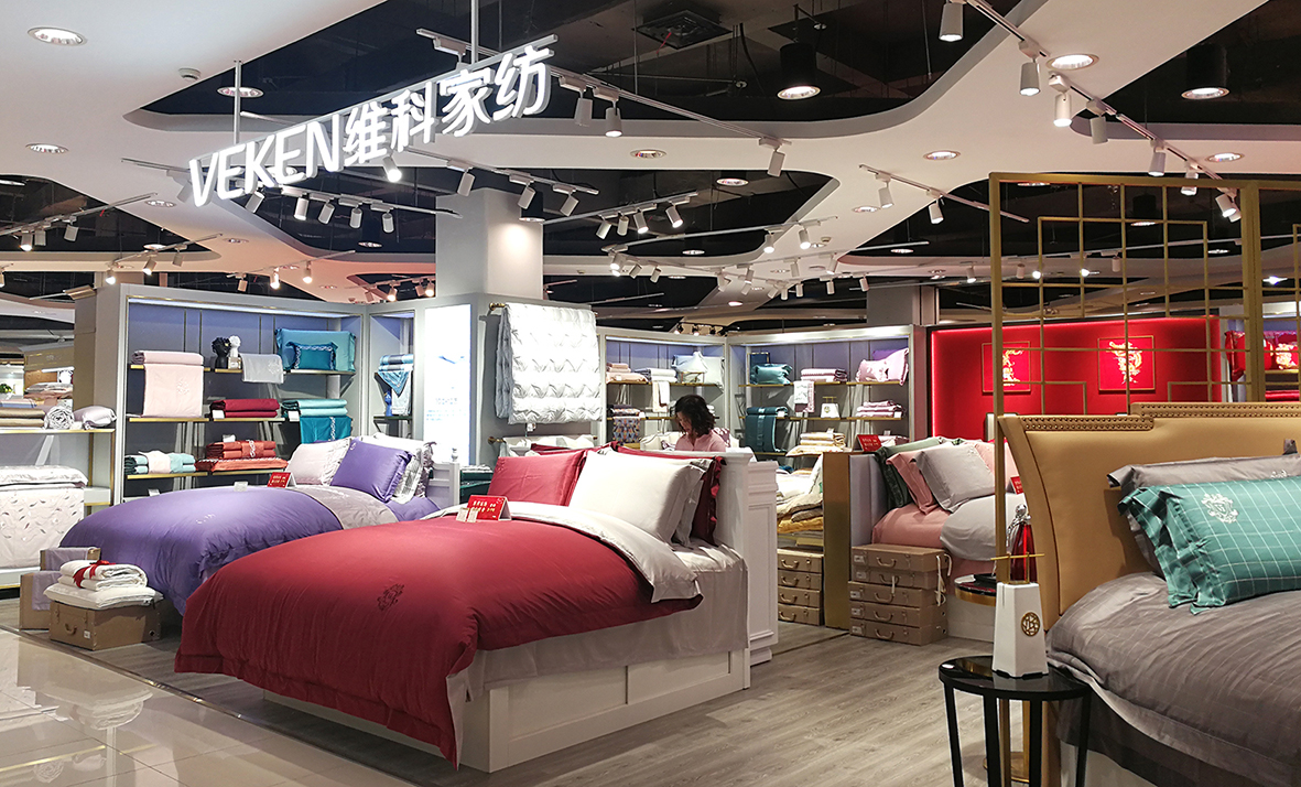 2019年,維科家紡主動出擊,借助商場年度調整之際,同時入駐三個商場,完成舟山核心商業版塊的布局。維科家紡專柜總營業面積近300平米,采用2019版最新店鋪形象,主打現代輕奢風格,代表時下家紡行業的裝修潮流。憑借維科家紡豐富的產品線和專業的營銷體驗,勢必可以喚醒舟山消費者對維科家紡最美好的記憶。
