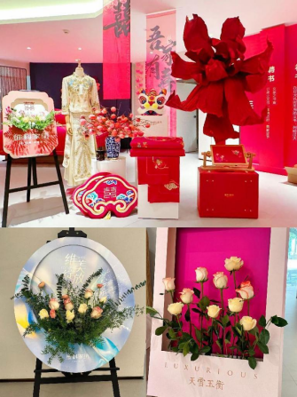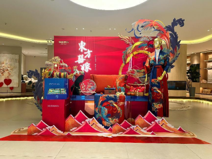 進門處DP點通過龍生九子的盲盒、龍頭鳳尾、團扇等元素營造出浪漫而喜慶的龍年氛圍,創造了一個令人陶醉的夢境。